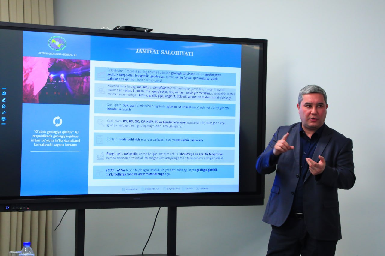 Кроме того, начальник Регионального геологического отдела АО «Узбекгеологоразведка» Максуд Ризаев подробно рассказал о деятельности акционерного общества.